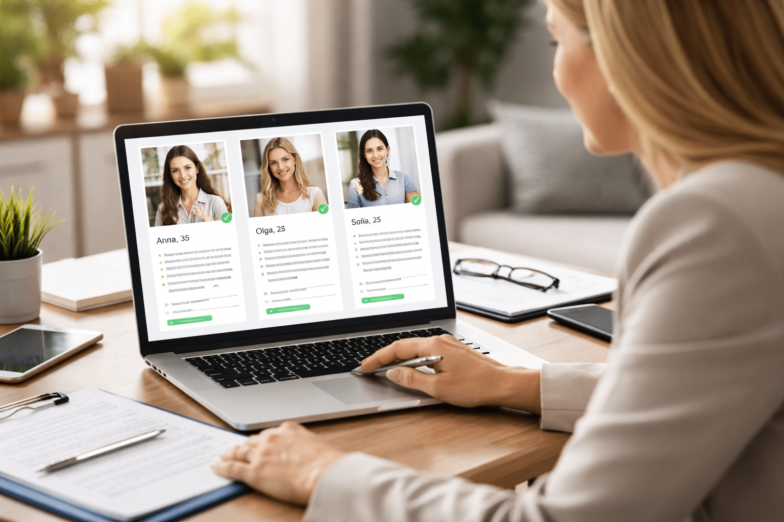 Семье предлагаются не «десятки анкет», а 2–4 релевантных кандидата с комментариями агентства.